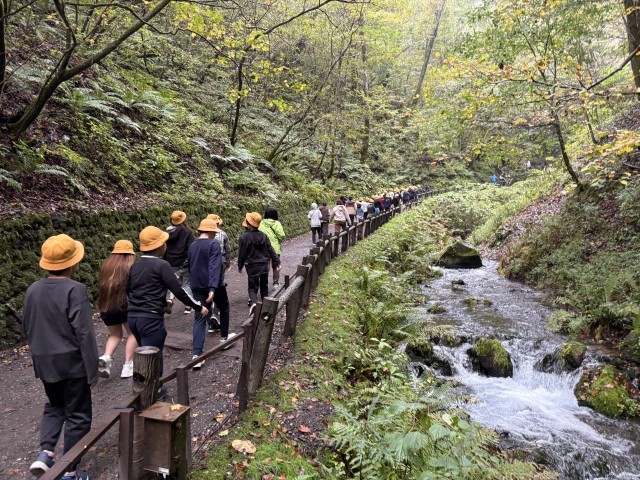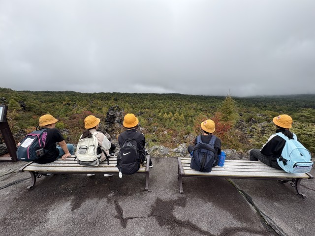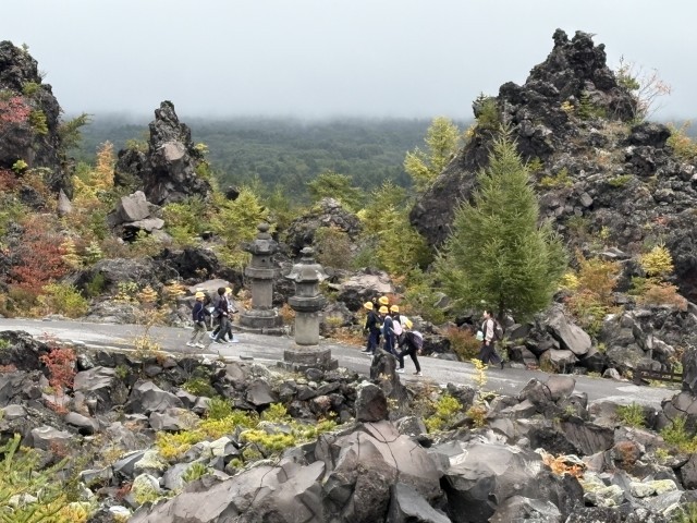 そして、午後のメイン活動となる鬼押出し園内でのハイキングです。行動班に分かれて、不思議な地形の様子を見学して回りました。約2時間の滞在でしたが、各グループよく見学できていたようです。
