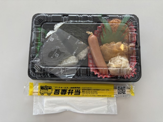 はじめに記念撮影をして、展望棟でお弁当を食べました。お弁当には、少し大き目の梅干しとさけのおにぎりが入っていました。昼食には充分そうです。