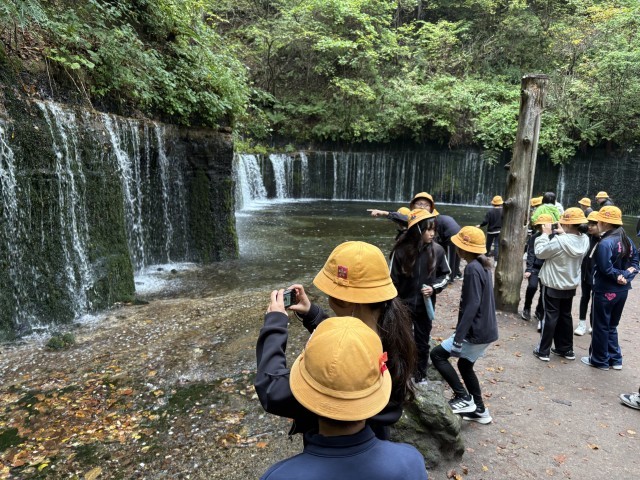 宿舎に戻る途中、白糸の滝を見学しました。この後、宿舎に戻り、早めの入浴です。