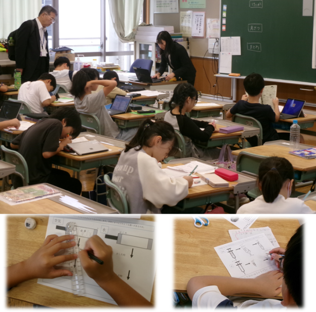 10月16日(木)に4年2組で理科の「とじこめた空気と水」の研究授業が行われました。この授業は全6時間中の第5時にあたり、子どもたちは「閉じ込めた空気は圧されるとどのようになるか」という学習課題に取り組みました。