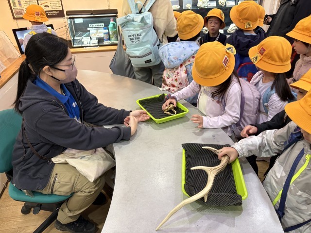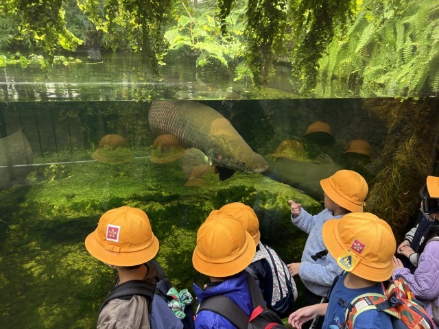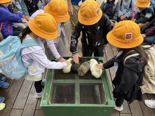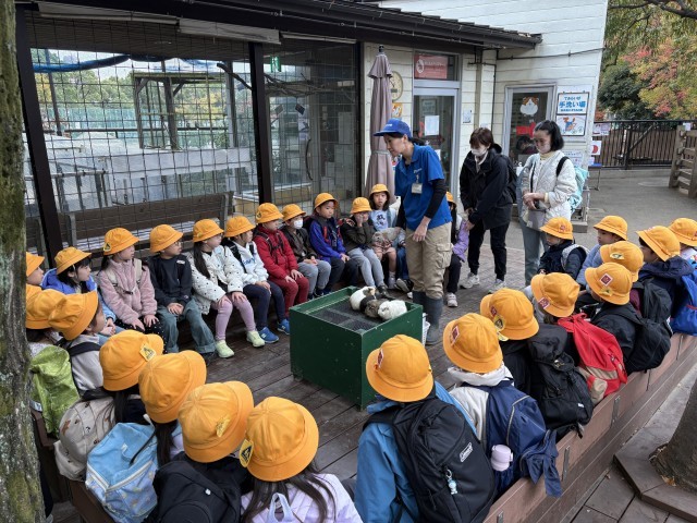 生物園に到着すると、係の方からのお話を聞いて、カンガルーやフクロウなどの動物の他、珍しい昆虫や水辺の生き物、動物の骨などを見学しました。ふれあいコーナーでは、1年生は、かわいらしいモルモットを撫でさせていただき、嬉しそうな笑顔を見せていました。