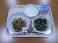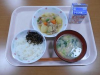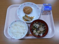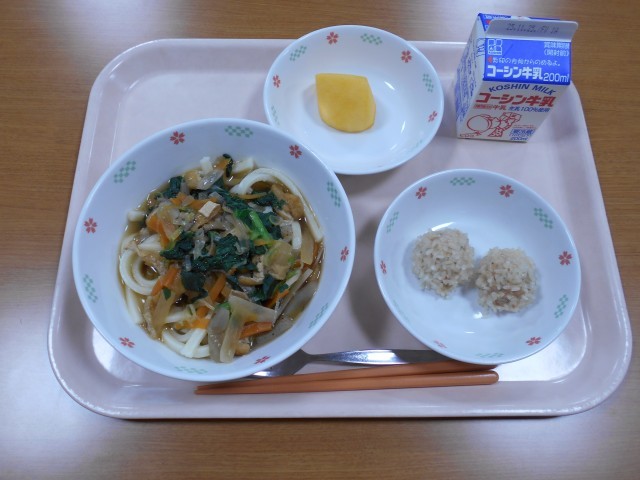 牛乳、けんちんうどん、肉団子のもち米蒸し、柿