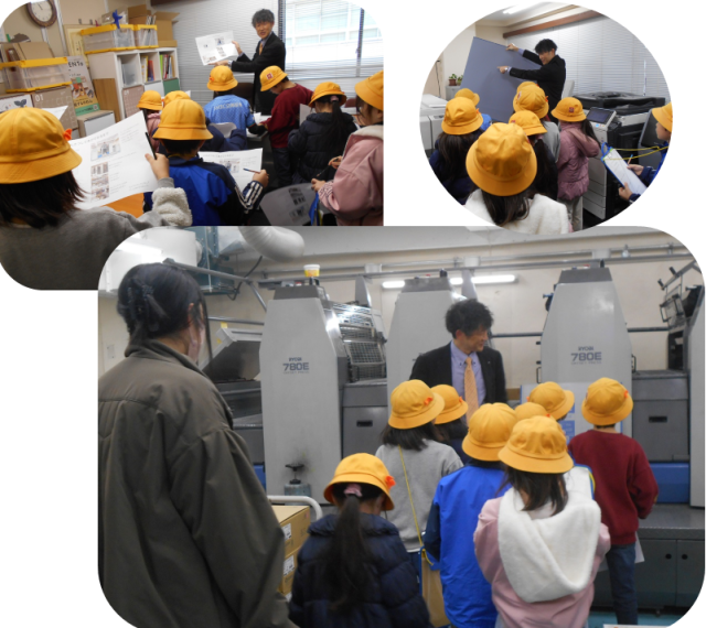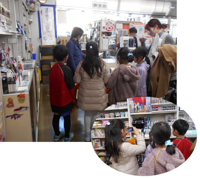 11月に第1回目のまちたんけんを学年全体で実施し、子どもたちは街の様子を見ながら様々な会社やお店があることを発見しました。気になったお店や会社をそれぞれが選び、今回は小グループを作ってそのお店/会社を訪ねました。淡路町駅、印刷屋さん、お茶屋さん、スポーツセンター、神社、製薬会社、文房具屋さんと訪問先は多岐にわたりました。