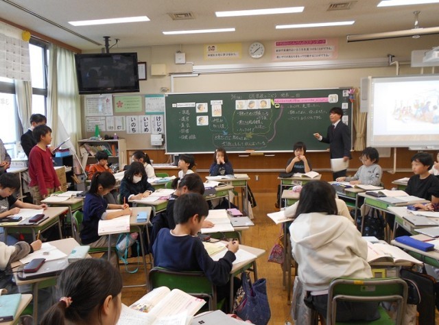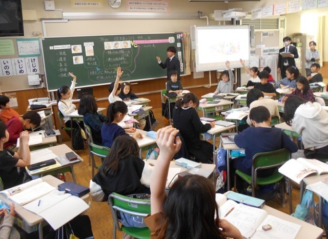12月17日(水)、心の教育コーディネーター研修会の一環として3年2組で道徳の研究授業が行われました。研究主題は「よりよい学校生活のために 一人一人ができること【Cよりよい学校生活、集団生活の充実】」で、教材は学校のぶどうを世話してくれる人や上級生の行動を見たり話しを聞いたりして、自分も手伝おうとする子どもたちの姿を描いた「学校のぶどう」です。