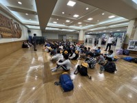 初回の授業では書道で使う用具の呼び方や使い方、筆の洗い方など、毛筆学習の準備と後片付けについて学びました。