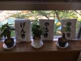 入学式で新入生に3つの木を贈りました。 1年生の教室に飾ってあります。