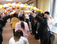 花アーチで歓迎 4/1 新教職員の初出勤