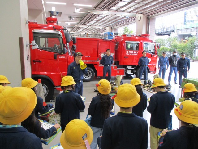 社会科「地いきの安全を守るはたらき」の学習で、神田消防署と万世橋警察署に見学に行きました。