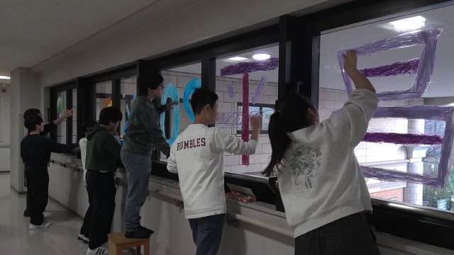 昌平小の玄関から見える窓に