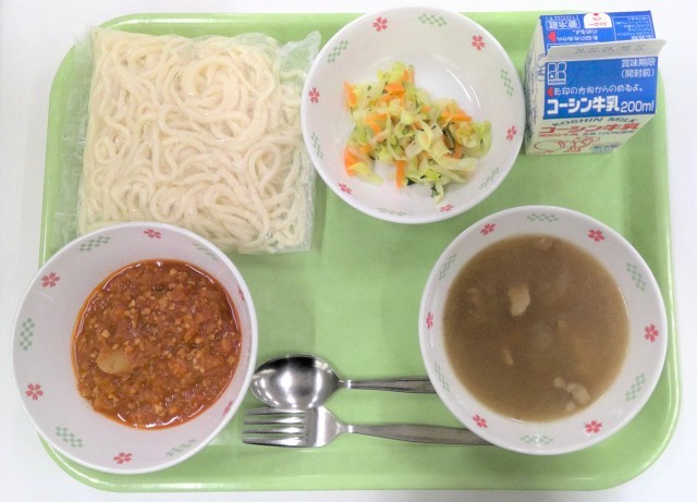 【昭和中期~後期】牛乳、ソフト麺、ミートソース、コールスローサラダ、オニオンスープ