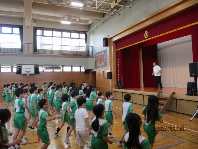 「笑顔と学びの体験活動プロジェクト」は、東京都教育委員会が都内の全公立学校及び私立学校を対象に、協働して課題解決に取り組む体験活動や児童・生徒の積極性やコミュニケーション力などを高め豊かな心の育成につなげることを目的とし、実施している体験プログラムです。去る9月16日(火)にEXILE ÜSAさんをゲストティーチャーとしてお迎えし、リズムに合わせての振り付けを学ぶ体験学習を行いました。4・5・6年生は、プロのダンスパフォーマーから直接指導していただき、徐々にリズムが取れるようになっていきました。楽しいダンスを通じて一体感が生まれる貴重な体験学習の機会となりました。