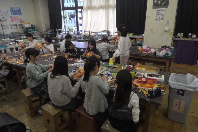 2学期のクラブ活動の様子です。工作クラブでは、ハロウィンに向けて「ハロウィン・バケツ」を制作しました。6年生が率先して下学年に作り方などを丁寧に教えていました。