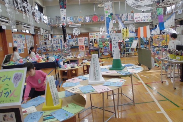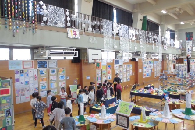 12月8日(月)~13日(土)まで展覧会が開催されました。令和7年度の展覧会は、個人面談期間に合わせて、6日間という長い展示期間で実施しました。また、13日(土)は午前中のみで終了し、その後に作品搬出作業という流れもあったことから、11日(木)・12日(金)は夜19時半まで夜間開放を行い、例年とは異なる初めての試みで展示を行いました。1年生から6年生までの作品が体育館いっぱいに広がり、児童も保護者や来訪される方々も、体育館へ入った瞬間に「ワーッ!すごい!」という感嘆の声を耳にすることが多かったように感じています。展覧会のスローガンは、『自分らしさ輝き 個性あふれる展覧会』でした。和泉小の子どもたちの個性がそこかしこにあふれている楽しい展覧会だったと感じていただけましたら幸いです。いずみこども園の造形活動も一緒に展示し、こども園の園児たちも楽しそうに展覧会を鑑賞していました。