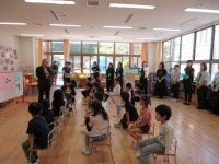 いつもと違う雰囲気の「みんなのへや」に、これから始まる観劇会に期待をもった様子の子どもたち。 始まりの合図の鈴がなると、劇団「風の子」さんの素敵な物語の世界...
