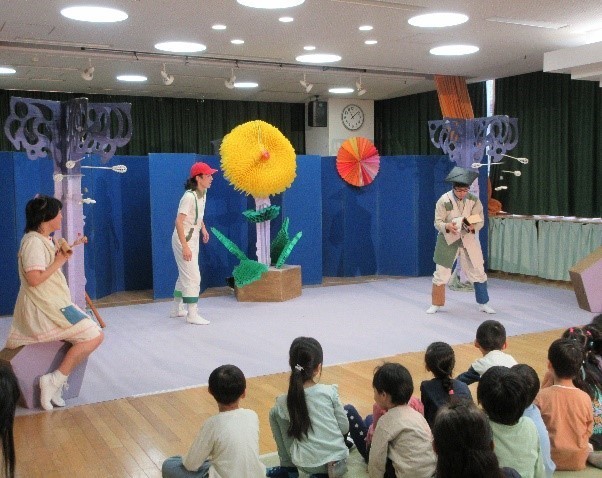 観劇会を通して体験したことに、興味・関心を高め、「自分も作りたい!やってみたい!」と意欲的に遊んだり、友達と相談しながら試行錯誤して作ったりして、さまざまなかたちで表現を楽しむ姿や生き生きとした表情に嬉しく思いました。