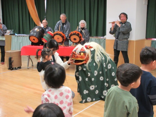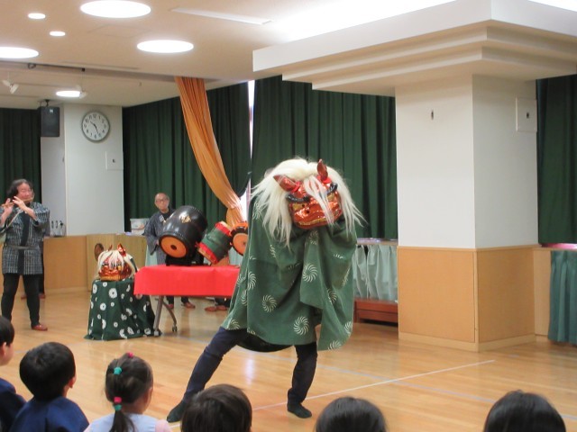 獅子がみかんを食べたり、ウトウトと寝てしまったりいろいろな表情を見せてくれ、日本文化に触れる楽しい時間を過ごすことができました。