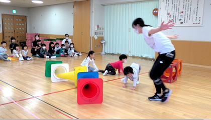 子どもから高齢者まで、体力の向上やけがの減少、やる気や集中力の向上が期待できるコオーディネーショントレーニング、麹町幼稚園の子どもたちも楽しみながら体を動かすことができたようです。