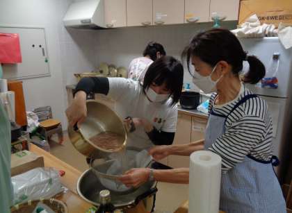 本日の収穫パーティーに向けて、園内では下ごしらえが始まっています。