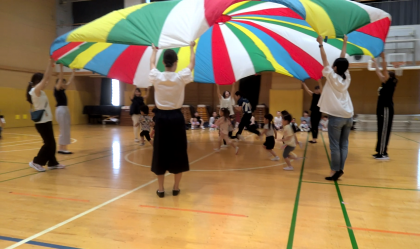 おうちの方と一緒にふれあい遊びやダンスをしたり、パラバルーンやかくれんぼをして過ごしました。