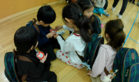 縦割りのグループに分かれて、なかよし給食をしました。そら組のお兄さんお姉さんが、迷子にならないようにとグループのシールを貼ってくれて、各部屋に移動しました。自分で給食を運ぶやま組やそら組を見たり、食前...