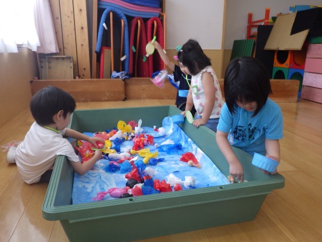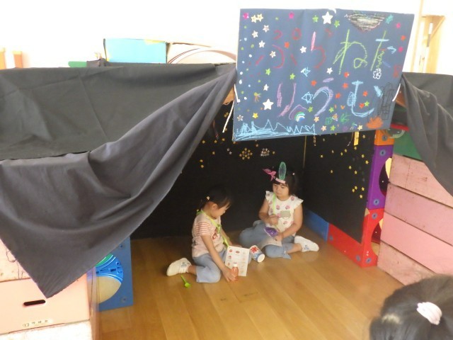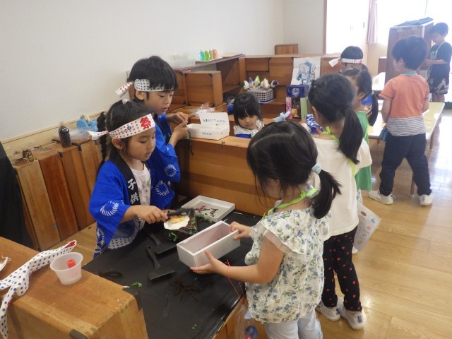 自分たちが考え準備してきた「なつまつり」に、たくさんの友達や先生、たんぽぽ広場の友達や保護者の方々など、みんなが笑顔で楽しんでくれた様子を見て、充実感を味わうさくら組の子どもたちでした。