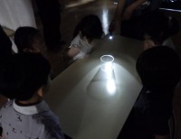 光について考えた後、いよいよ自分たちで光を探してみることにしました。いろいろ道具...