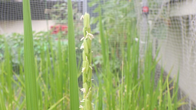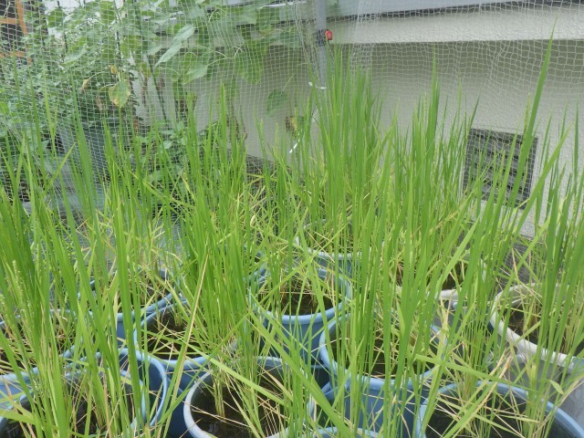 暑い夏が続いていますが、5歳児うめ組が5月に植えた稲は、暑さに負けずぐんぐん生長中です。