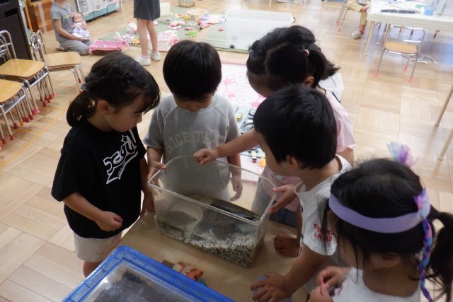 夏季預かり保育でも、各学年で飼育している生き物のお世話を子どもたちとしています。
