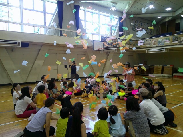 最後には、みんなの気持ちと動きが合わないとできないファンタジーの世界のような光景に、歓声があがりました。