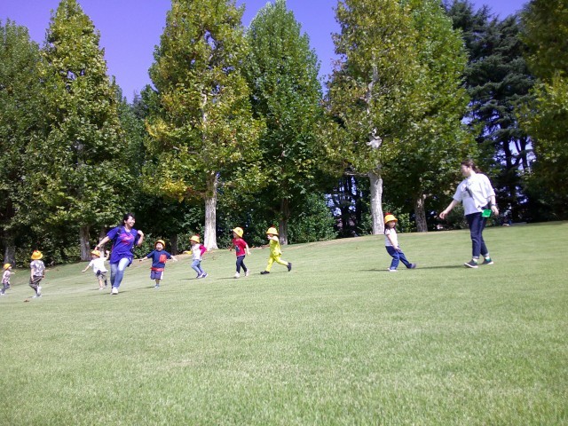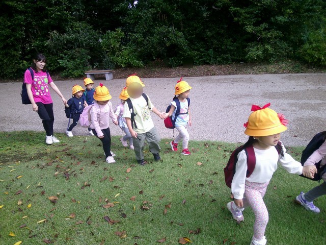 新宿御苑では、どんぐりを拾ったり・プラタナスの並木で大きな葉っぱで遊んだり、芝生で思い切り走ったりして秋の自然にふれたくさん体を動かして楽しみました。