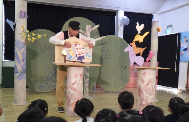 11月10日、劇団風の子関西の方をお招きし、「タックンとおりがみおじさん」の劇を観劇しました。