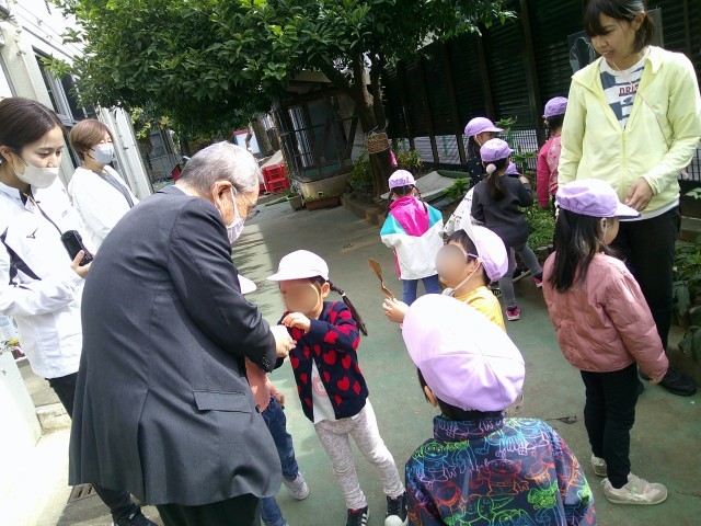 少し遡りますが・・・11月上旬に、大妻大学教授石井 雅幸先生をお招きして、学年ごとに園庭の自然を中心に自然に親しむ活動をしました。