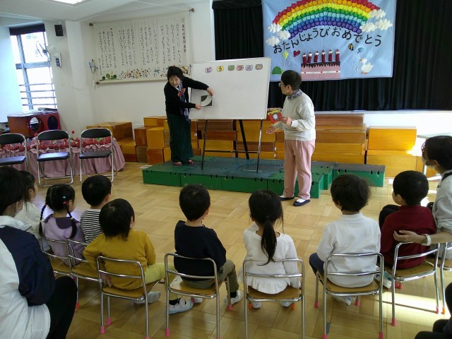 パネルシアターやペープサートなど、手作りの温かい絵と、マイクも通さず電子音もない柔らかで温かい人の声とで織り成されるお話の世界に、子どもたちは引き込まれお話の世界にどっぷり入り、魅了されていました。