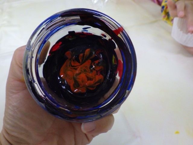 実はこの日どのグループでも子どもたちがはじめに強く興味を持ったのは、色が「固まった」ということ。