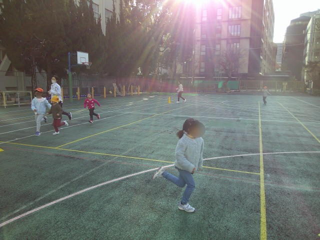 まぶしい朝の光の中で、校庭を元気いっぱい走るマラソンタイムからスタートです。