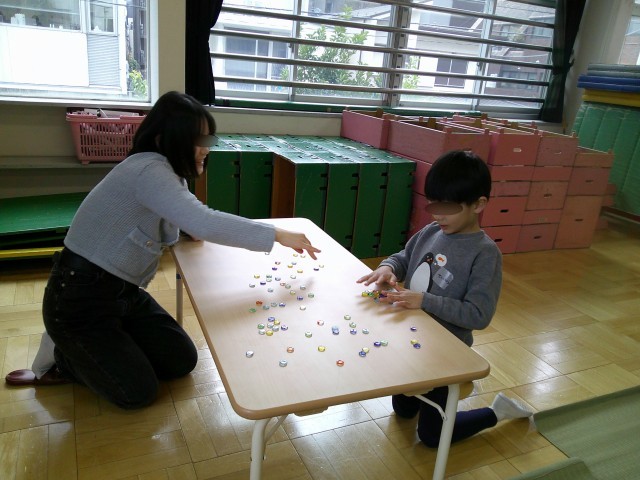 すごろくを一緒にしていただいたり、けん玉が成功すると一緒に喜んでくださったり、「初めてやってみたよ」という初挑戦の子どもにおはじきを教えてくださったりし、温かな交流のひと時でした。