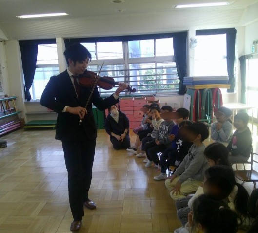 冬季預かり保育3日目の今日は、サプライズゲストとしてバイオリニストの長又允希さんに来ていただきました🎻