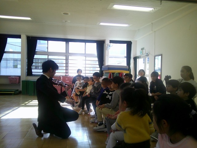 子どもたちに馴染みのある曲の演奏をはじめとし、バイオリンで乗り物や動物の音をクイズ形式で奏でてくださったり、