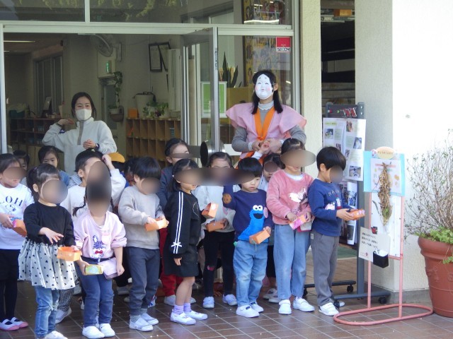 この日の降園時は、さくら組の子どもたちではなく、かわいい鬼たちがお家の人のところに行って驚かせました。