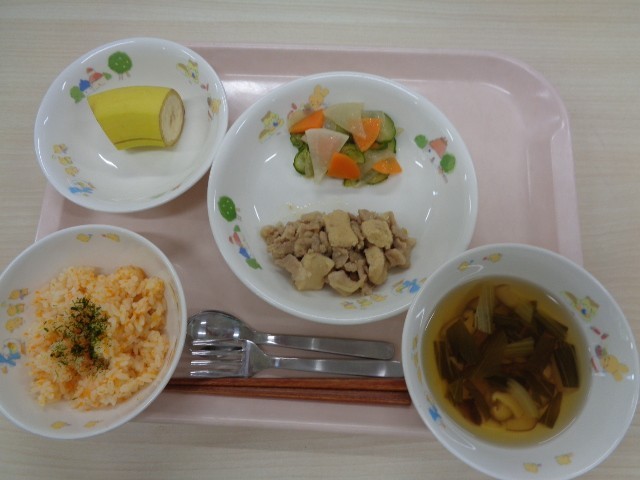 9月22日(月)の給食 公開日 2025/09/22 更新日 2025/09/22 今日の給食 9月22日(月)献立名:あけぼのごはん・豚肉と高野豆腐の炒め煮・大根ときゅうりの和風サラダ・春雨とチンゲン菜のスープ・くだもの(バナナ)・牛乳