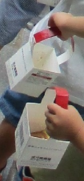 3歳ちゅうりっぷ組のみんなで隣接している錦華公園に秋を見付けにお出掛けです。色付いてきた落ち葉やドングリを見付けると一人一人持っている牛乳パックの中に入れて嬉しそうにしていました。