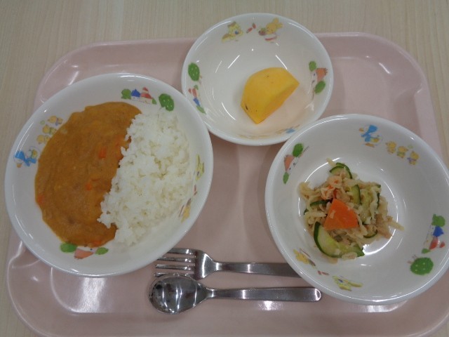 10月24日(金)献立名:ごはん・ポークカレー・切り干し大根とツナのサラダ・くだもの(柿)・牛乳