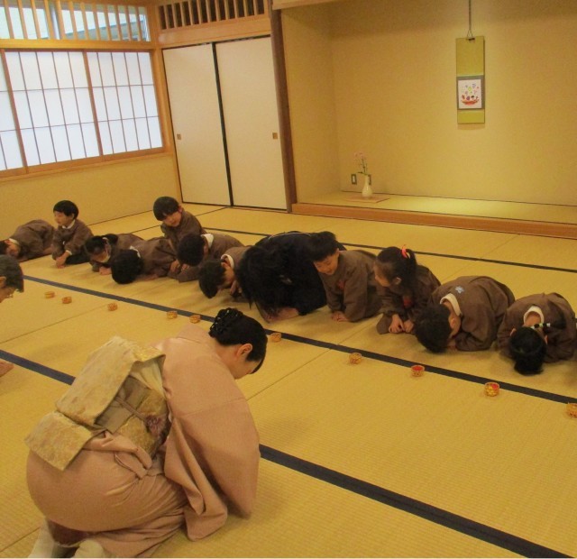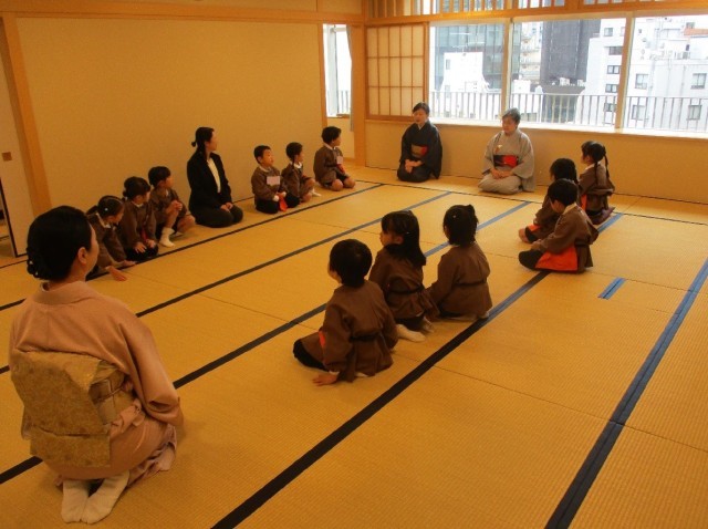 今日のお茶会ではちゅうりっぷ組がお茶室にあがりお菓子をいただいたり、ばら組は自分でお茶碗を運んだりし、ひまわり組は亭主とお客に分かれて互いにおもてなしをしました。初めてのことも体験しましたが、茶道の話を聞き一生懸命取り組みました。