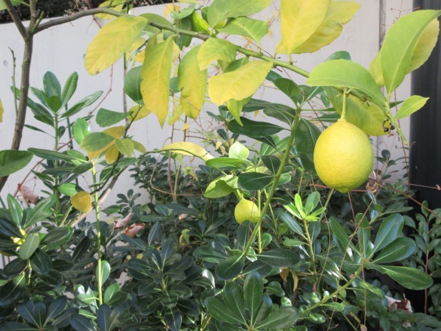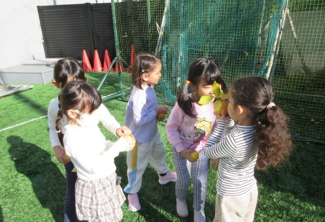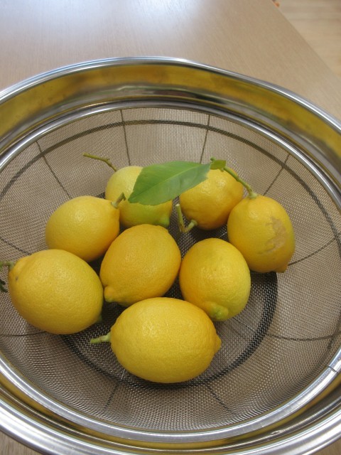 5歳児ひまわり組が水やりをしているレモンの木に、今年もたくさんレモンの実がなりました。