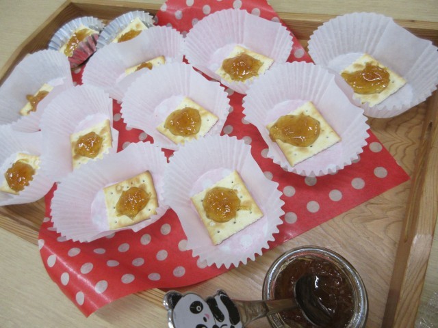 レモンジャムパーティ! 公開日 2025/12/25 更新日 2025/12/25 できごと 先日収穫したレモンをジャムにして2学期最後のお楽しみにレモンジャムパーティをしました。「あまくてすっぱくておいしい」「おかわりしたい!」と大好評でした。