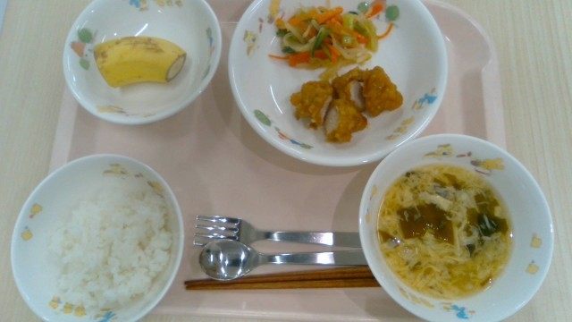 1月26日(月)の給食 公開日 2026/01/26 更新日 2026/01/26 今日の給食 1月26日(月)献立名:ごはん・油淋鶏(ゆーりんちー)・チンゲンサイともやしのナムル・卵とわかめのスープ・くだもの(バナナ)・牛乳