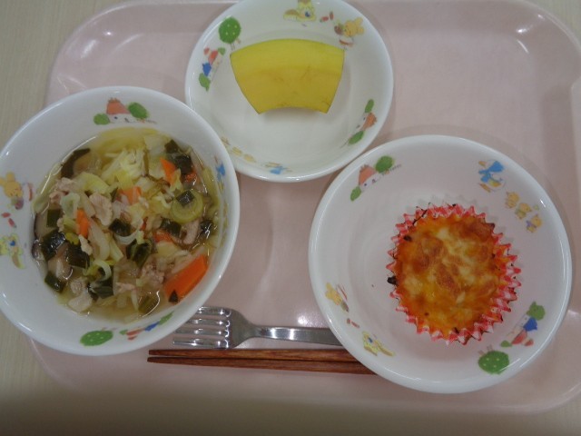 1月30日(金)献立名:タンメン・かぼちゃのチーズ焼き・くだもの(バナナ)・牛乳