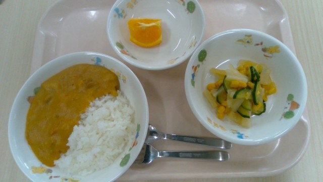 2月18日(水)献立名:ごはん・ポークカレー・和風サラダ・くだもの(いよかん)・牛乳