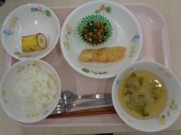 2月26日(木)献立名:ごはん・白身魚のかば焼き・小松菜の納豆あえ・みそ汁・くだ...