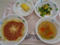 3月10日(火)献立名:スパゲッティカレーミートソース・ブロッコリーとカリフラワ...